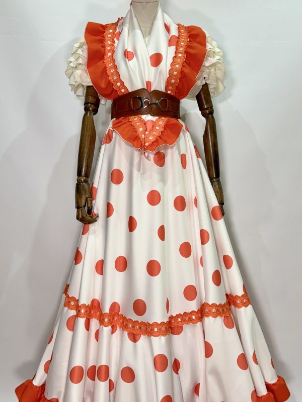 Conjunto mantoncillo y falda blanca lunar amarillo