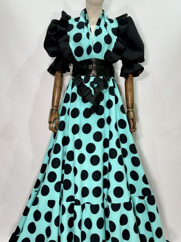 Conjunto mantoncillo y falda verde agua lunar grande negro
