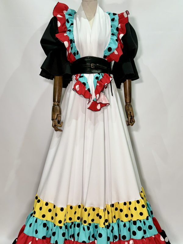 Conjunto mantoncillo y falda canastera colores en negra combinada