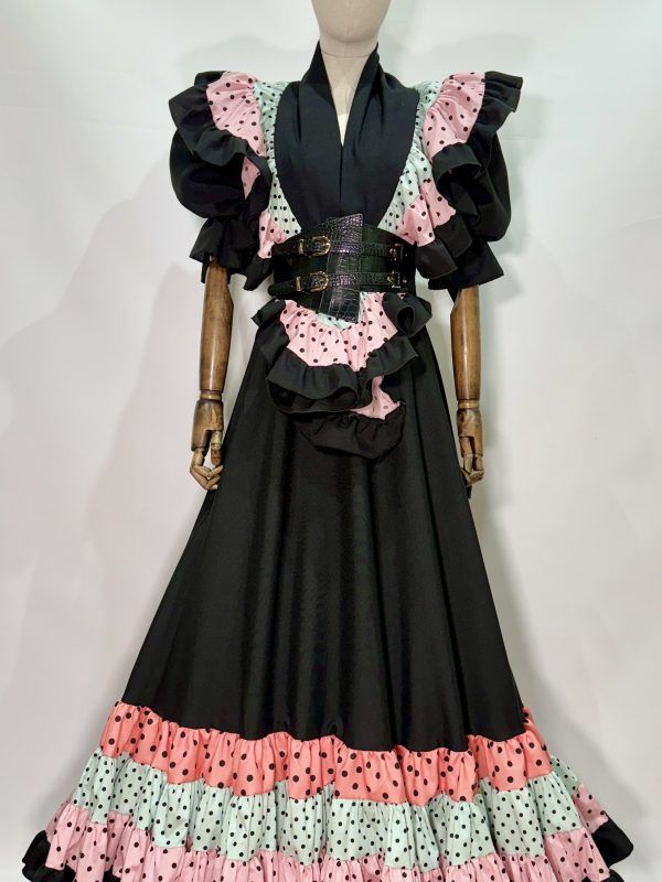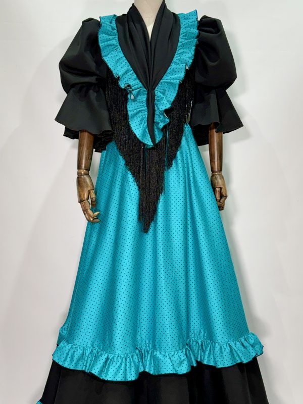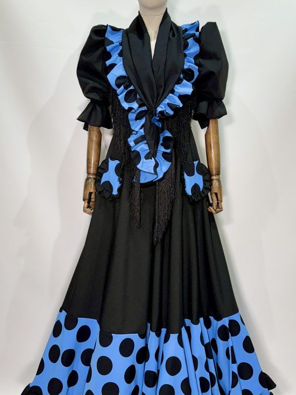 Conjunto mantoncillo y falda negra volante azul lunar negro