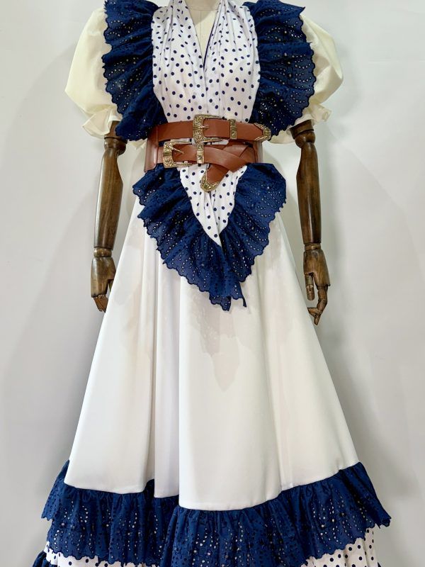 Conjunto mantoncillo y falda blanca tirabordá marino