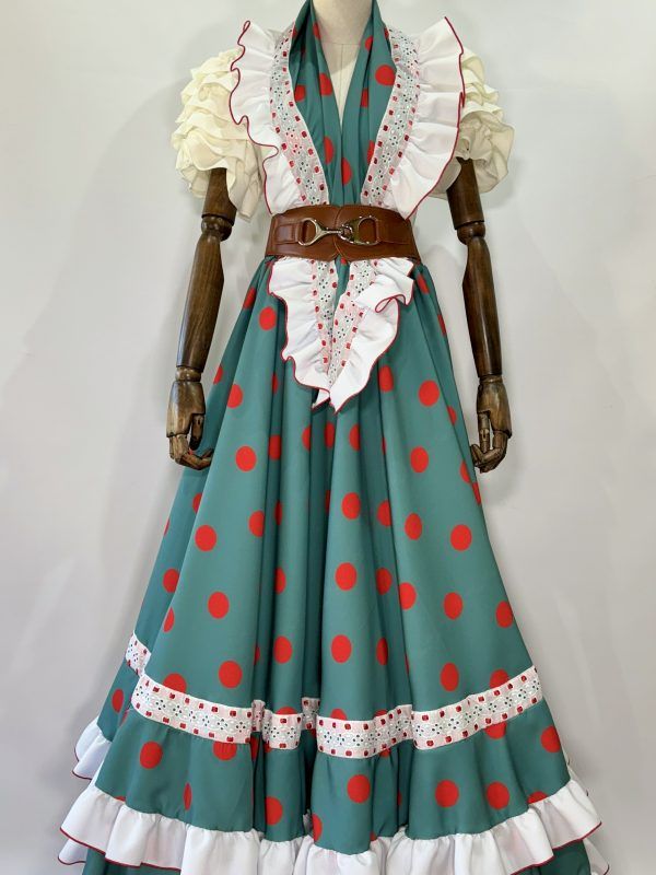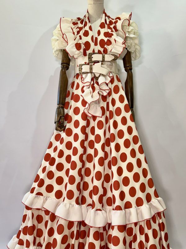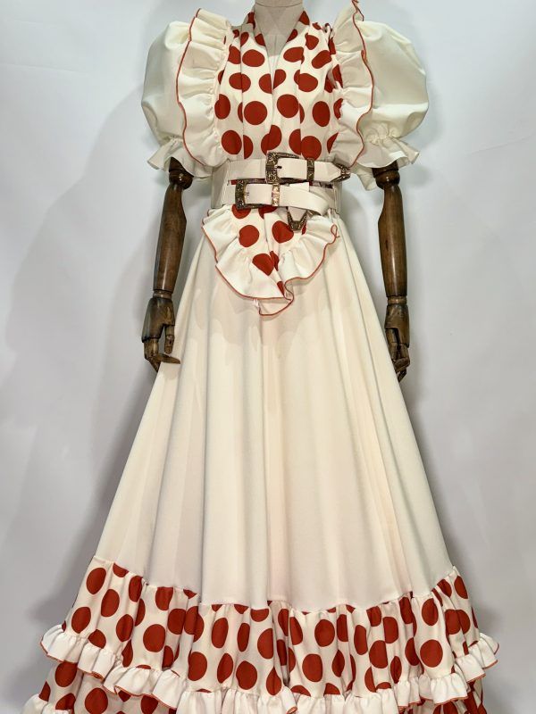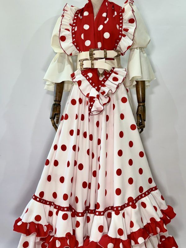 Conjunto mantoncillo y falda blanca lunar rojo combinada rojo lunar blanco