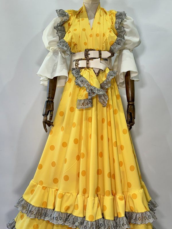 Conjunto mantoncillo y falda amarilla lunar amarillo tirabordá gris