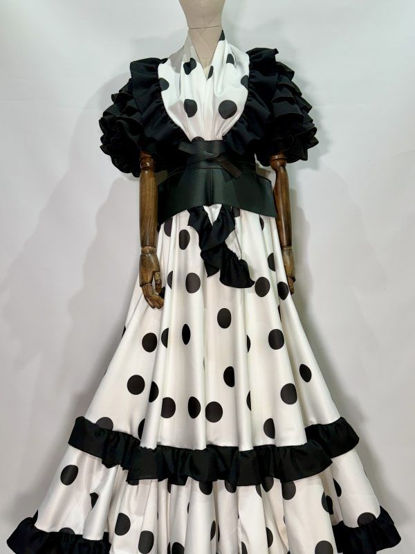 Conjunto mantoncillo y falda blanca lunar negro
