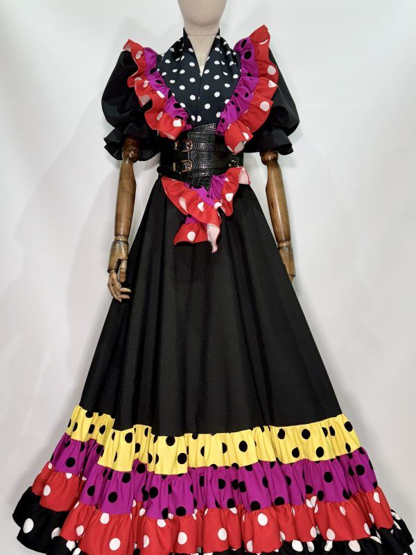 Conjunto mantoncillo y falda canastera colores en negra