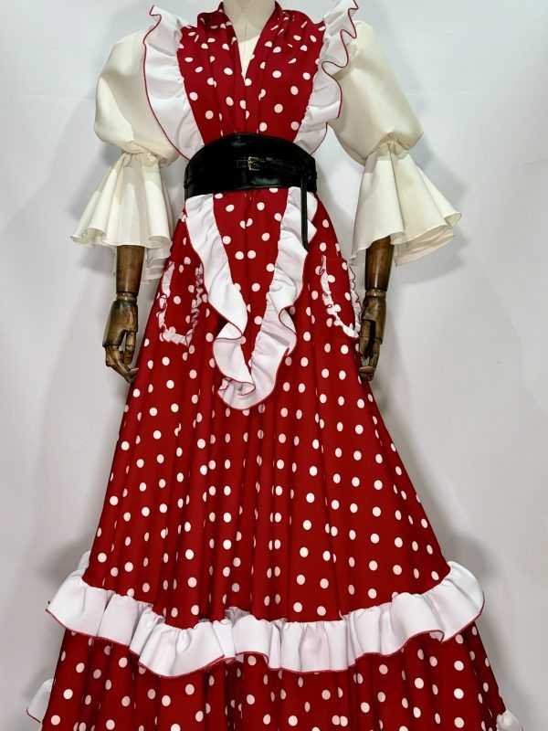Conjunto mantoncillo y falda roja lunar blanco con bolsillos