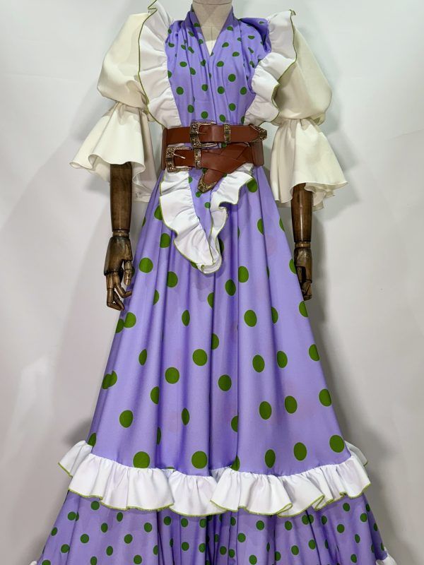 Conjunto mantoncillo y falda lila lunar verde