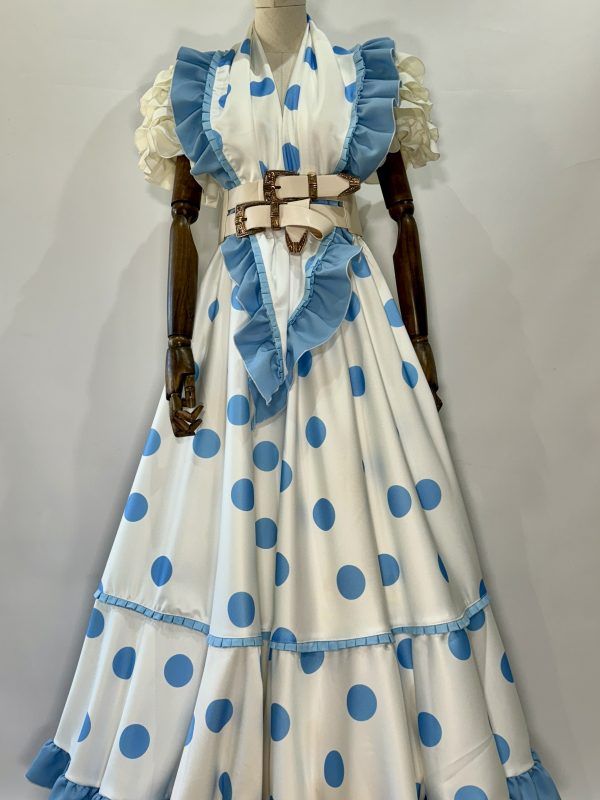 Conjunto mantoncillo y falda blanca lunar turquesa