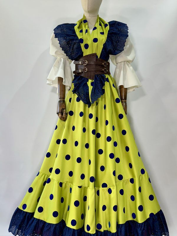Conjunto mantoncillo y falda lima lunar marino con tirabordá