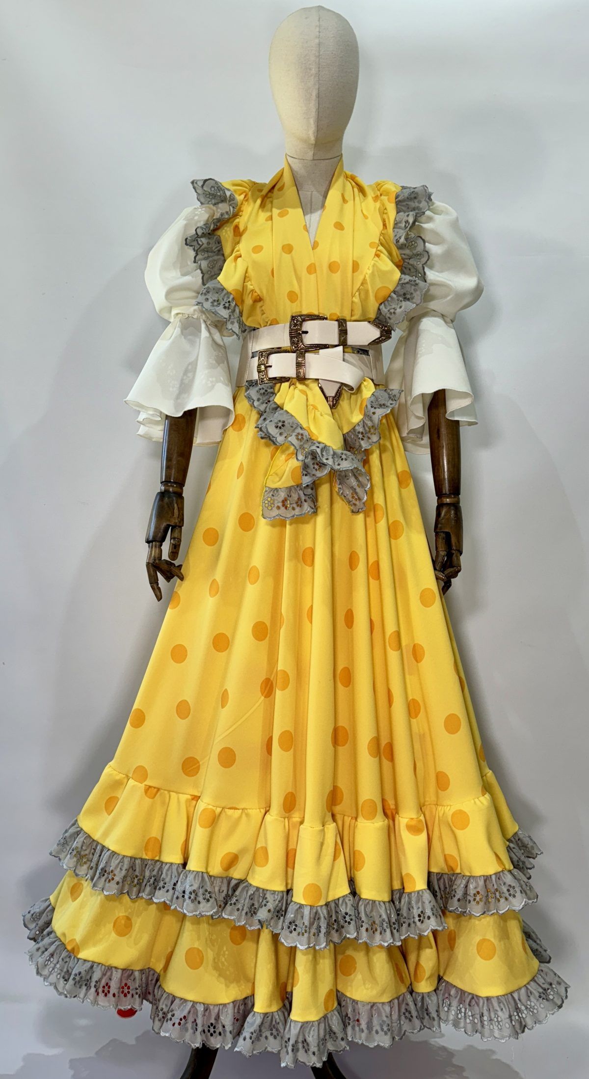 Conjunto mantoncillo y falda amarilla lunar amarillo tirabordá gris