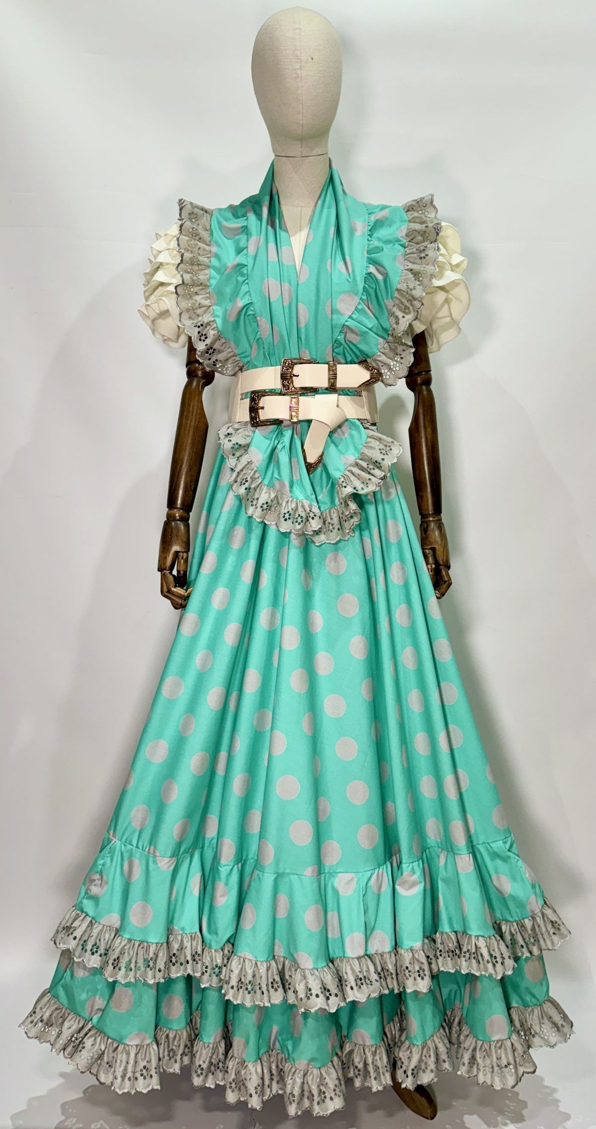 Conjunto mantoncillo y falda verde agua lunar gris tirabordá gris
