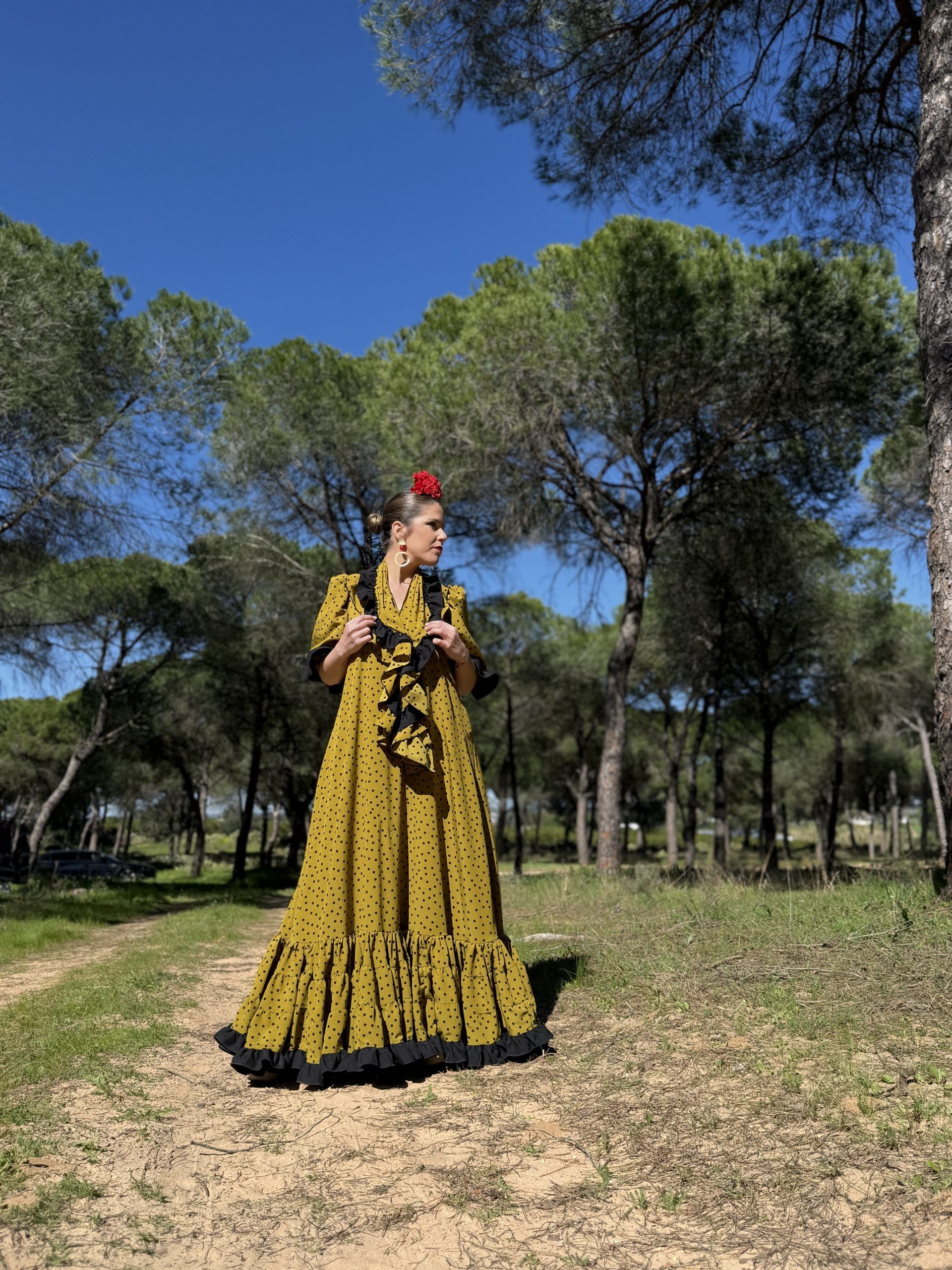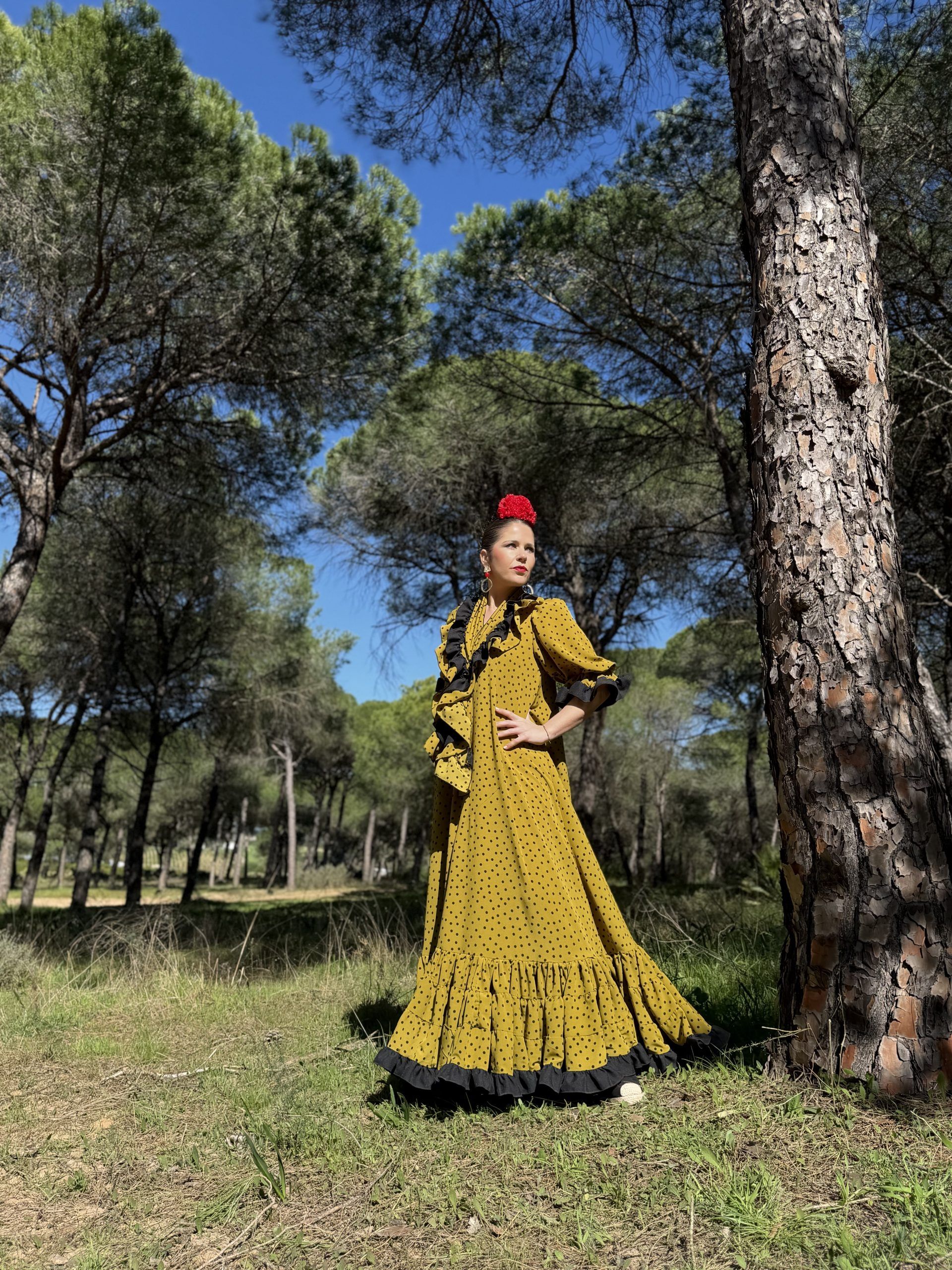 Vestido con falda canastera en el bajo. Mantoncillo a juego con el vestido.