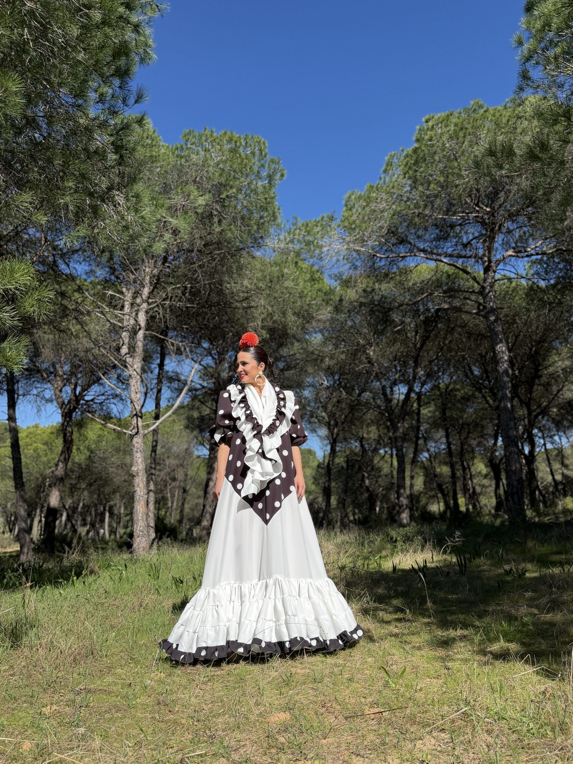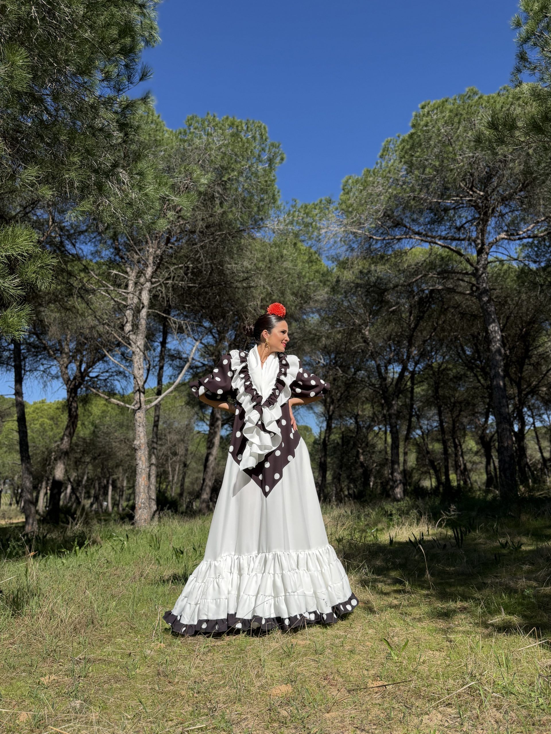 Vestido con falda canastera en el bajo. Mantoncillo a juego con el vestido.