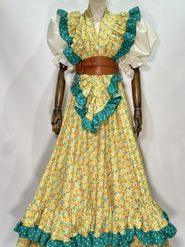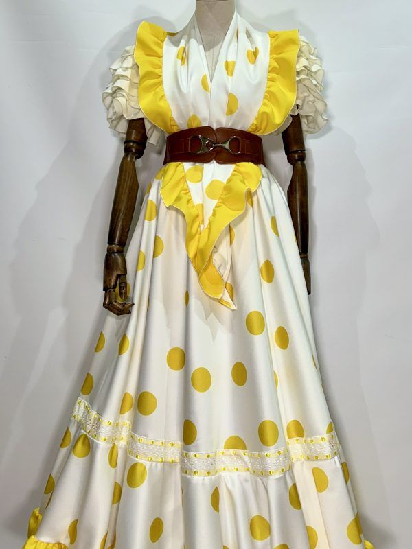 Conjunto mantoncillo y falda blanca lunar amarillo